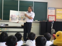表彰の後、校長先生が、手袋を使ったおはなしの紹介と、「かわいそうなぞう」の絵本の読み聞かせを行いました。子ども達は、とても真剣に聞き入っていました。