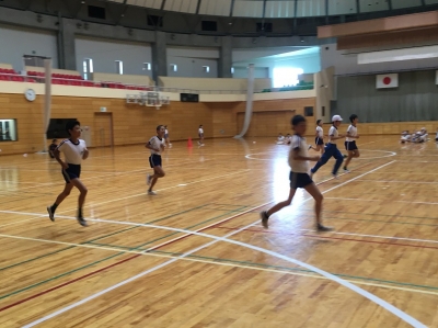 さすが5・6年生。最初はジョギング程度に速さを調整しながら挑戦していました。それぞれに目標値を設定していたようで、喜んだり悔しがったりする姿が見られました。