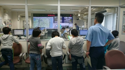 通信司令室ではたくさんのパソコンを使って情報のやりとりをしているそうです。