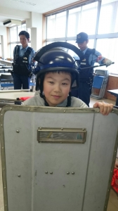 防弾チョッキやヘルメット、盾なども見せてもらいました。