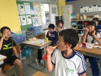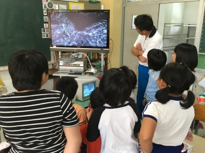マイクロスコープで確認したところ、上学年の子ども達でも、元気よく動き回る菌がたくさん映っていました。6年生の中には、その菌の様子を見て、気分が悪くなった児童もいたほどでした。