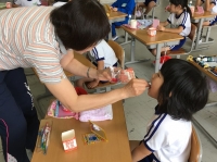 最後に、自分たちがいつもやっている歯みがきの仕方ではきれいに落ちていない部分を再チェックした後、「歯みがき名人 5か条」を教わり、正しい歯みがきの仕方について確認し合いました。