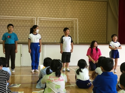2年生は、「ミリーのすてきなぼうし」、3年生は、「もうすぐ雨に」と、ともに教科書にある教材の音読発表を行いました。