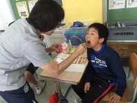 給食後の歯みがきの時間には、「ちゃんと磨かなきゃ」と自分に言い聞かせながら、教わったことを生かして、入念に歯を磨く姿が見られました。