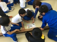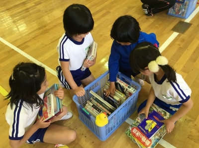 子供たちは、おもしろそうな本を見つけようと、本が入っているケースを渡り歩き、たくさん借りていました。