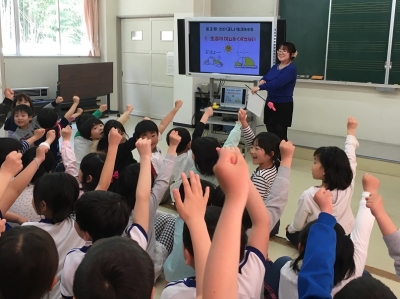 本日の集会活動は、生徒指導の先生から、楽しいゴールデンウィークにするための約束についてお話しがありました。