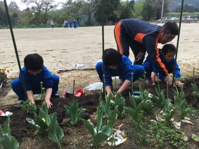 2年生が、生活科の学習でミニトマトの苗を植えました。