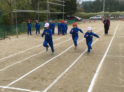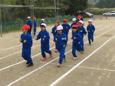 腕をしっかり振って、元気に行進!「いち、に、いち、に」。
