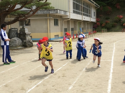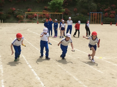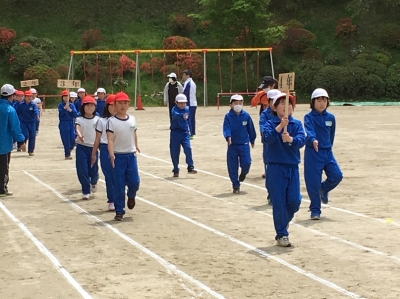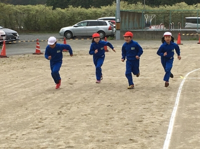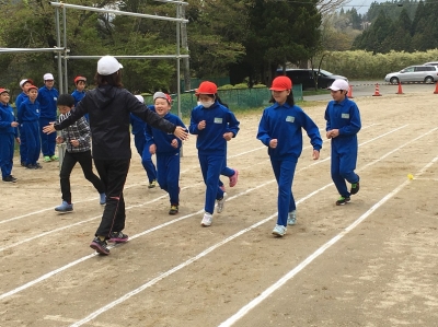 下学年リレー練習の様子です。上手にバトンをもらって、「がんばって、走るぞ。」