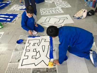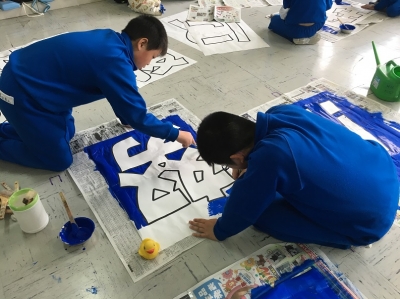 6年生全員が、自分たちの願いを絵の具と刷毛に込めて一生懸命仕上げていました。