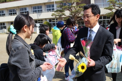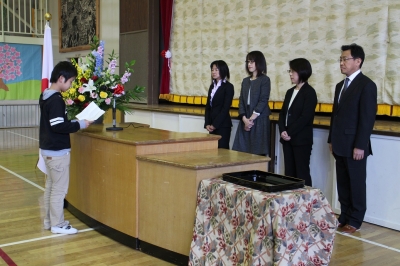 教科書給与や入学祝い品授与の代表となった3名の新入生は、堂々とした態度で大役をこなしていました。