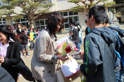 式の後の見送りでは、子ども達一人一人と握手や言葉を交わしながら別れを惜しみました。