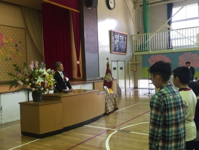 また、校長先生からの歓迎の言葉、教育委員会からの励ましの言葉、町長や議会議長、PTA会長からのお祝いの言葉、児童代表からの歓迎の言葉など、お話を聞く時間もたくさんありましたが、しっかりと聞いていました。