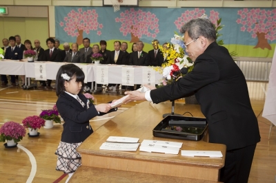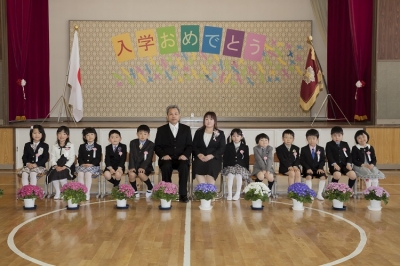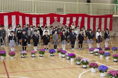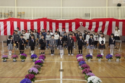 入学児童呼名では、自分の名前が呼ばれると大きな声で返事をして立ち上がり、全員の名前が呼ばれるまで姿勢良く待つことができました。