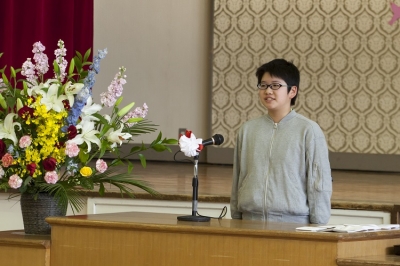 児童代表は原稿を見ずに堂々と歓迎の言葉を述べました。