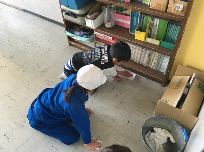5・6年生を中心に、一生懸命取り組んでいました。特に、拭き掃除がとても上手でした。