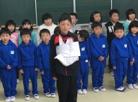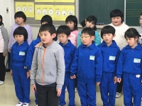 転退職される先生方からお一人ずつお話をいただいた後、新6年生の代表が別れの言葉を述べました。最後に校歌を歌い、お別れする先生方にエールを贈りました。