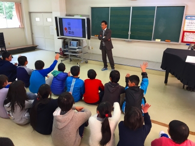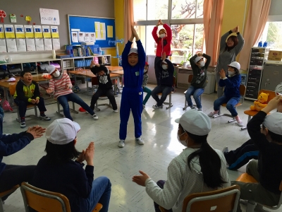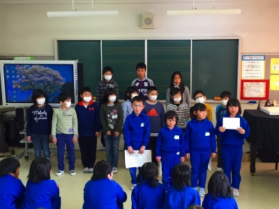 毎週水曜日のお昼は飯豊っ子タイム。今年度最後の今日は全校集会でした。まず表彰があり、その後3学期(今年度)の反省発表がありました。