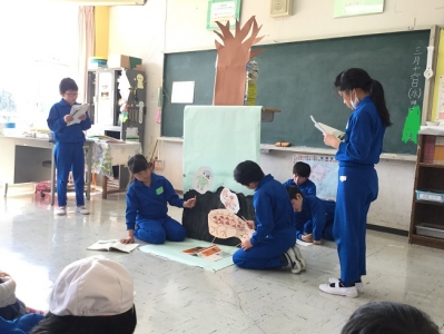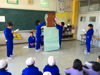 1年生から6年生までのたくさんの観客が来てくれました。そんな中、堂々と発表できました。時間の都合で、最後の場面が残ってしまいました。明日の昼休み、最後の場面を発表します。