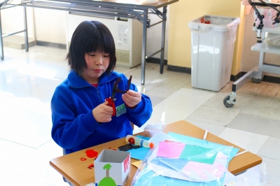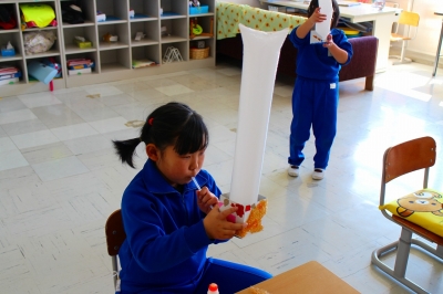 図工の授業で、なにやら面白い仕掛けを作っていました。