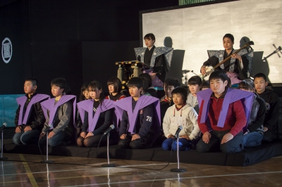 500年の長い歴史をもつ人形浄瑠璃という伝統芸能を、本校と浮金小の児童全員が鑑賞しました。