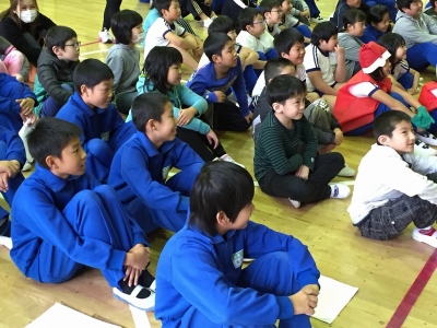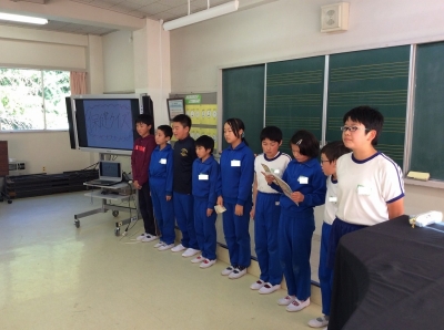 毎週水曜日のお昼は、お掃除をせずに「飯豊っ子タイム」を実施しています。今年度は、各委員会が趣向を凝らして発表などを行う回もあります。