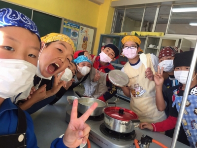 5年の家庭科の授業で、調理実習を行いました。