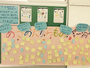 子どもたちが見つけた秋の自然のすばらしさをみんなに伝えるための「あきのたからものパーティー」を開きました。