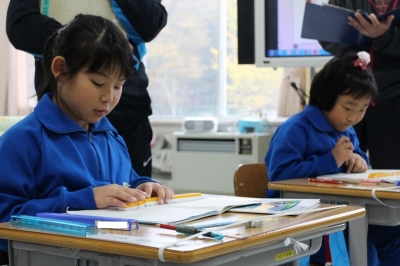 1年生、入学して7か月。先生や友だちの話をしっかり聞くことはもちろん、黒板の前で自分の考えを説明することもできるようになりました。