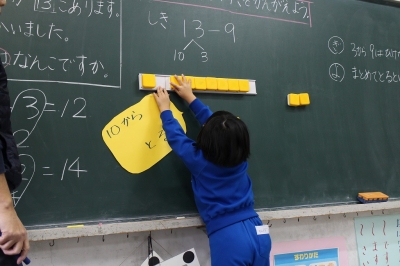 ブロックを使って考えたり、友だちの考えを聞いたりしながら、正しい計算のしかたを理解することができました。