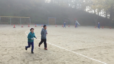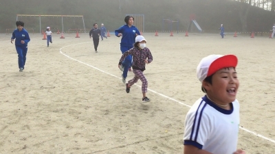 そんな中、子ども達は朝のマラソンに励んでいました。