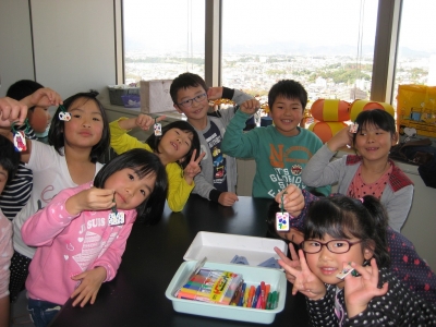 午前中は、プラネタリウムを見た後、プラスチックを使ってアクセサリーを作りました。