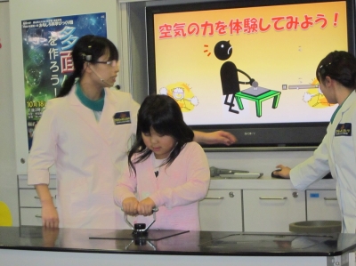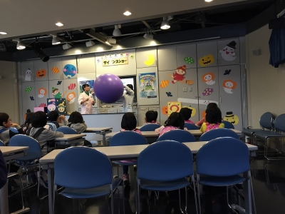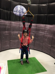 昼食を食べた後、展示ゾーンでサイエンスショーを見たり、宇宙体験シミュレーションやムーンジャンプに挑戦しました。