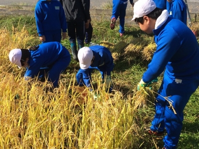 本日、5・6年生が稲刈りを実施しました。