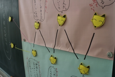 国語・「ごんぎつね」の単元で、最後にうなずいたときのごんの気持ちについて、みんなの考えを交流しました。