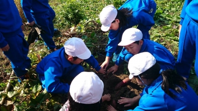 3・4年生が総合の授業で育てていたサツマイモとカボチャを本日収穫しました。