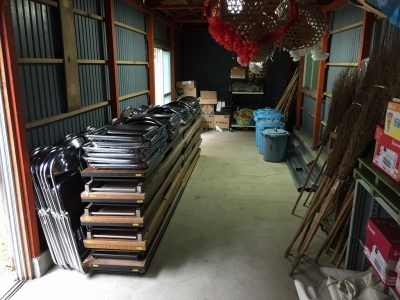 すっきり整理され、これで、運動会で使うテントや支柱、入場門の鉄パイプ、玉入れのかごや玉、長机等はすべてこちらの物置に保管となりました。