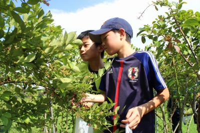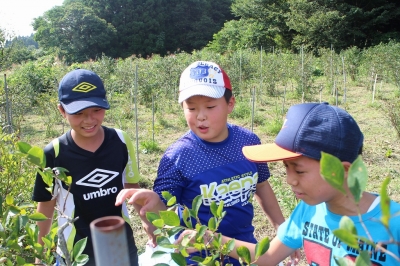 9月4日(金)、5・6年生がリン子ばあさんのご厚意で、ブルーベリー摘みを体験させていただきました。