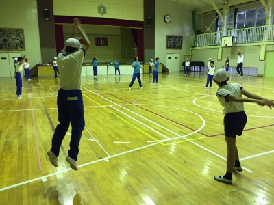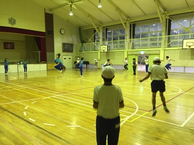 雨で校庭が使用できない日が続いていますが、体育館で練習に励んでいます。