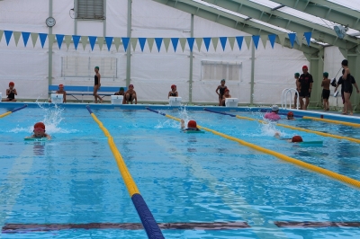 子どもたちは、この夏の水泳練習の成果を発揮し、自己ベストを更新しようと頑張りました。