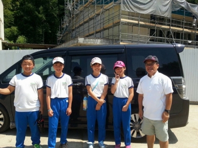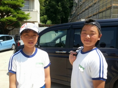 緑の少年団交流会に参加する6年児童4名が、会場のフォレストパークあだたらへ出発しました。