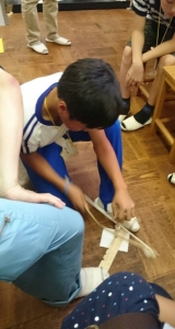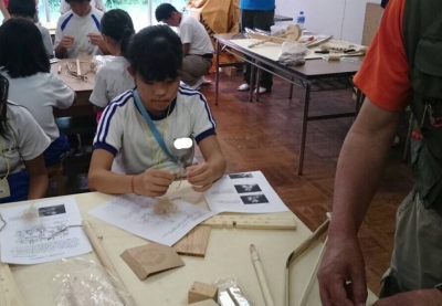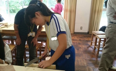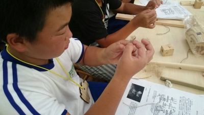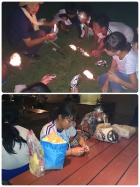 顔合わせをした後、火おこし体験をしています。悪戦苦闘しているようです・・・