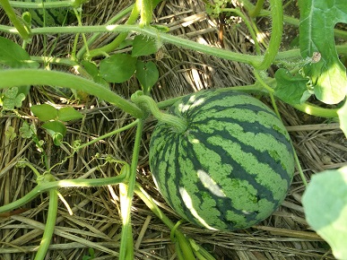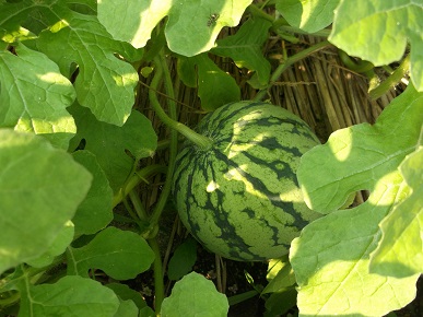 なんと、大人の手のひらほどに育っています。そのほかにも、たくさんの実ができています。数えたら8個が子どもの握りこぶしほどに成長していました。子どもたちの喜ぶ顔が目に浮かびます。