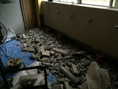 現在、1階トイレと理科室の水回りを工事しています。2学期の始業式までには完成予定ですので、楽しみにお待ちください。