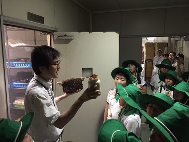 最後に、きのこ振興センターに行き、なめこの菌床栽培の仕方についてお話を聞きました。