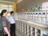 教室を訪問し、「飯豊の子どもたちはみんなかわいい。また日本に来たら必ず来ます」と言いながら写真などをなつかしそうに見ていました。