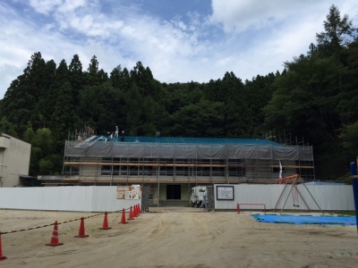 体育館屋根のさび付きがひどかったため、これまでの屋根の上にカバーする形で生まれ変わりました。
