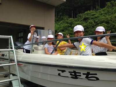 こまちダムで、ボートに乗せてもらいました。これは、何に使うのかな?