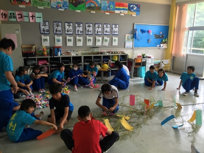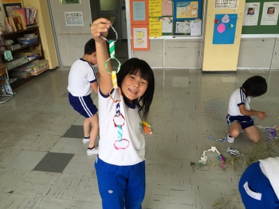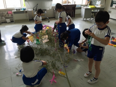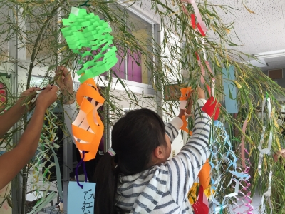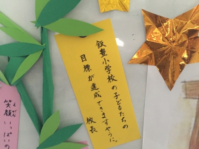 「パティシェになれますように。」「クロールで速く泳げますように。」「家族みんなが幸せになれますように。」など、学校の廊下には、みんなの願いごとを書いた短冊が飾ってあります。