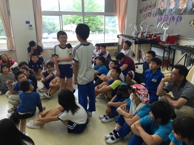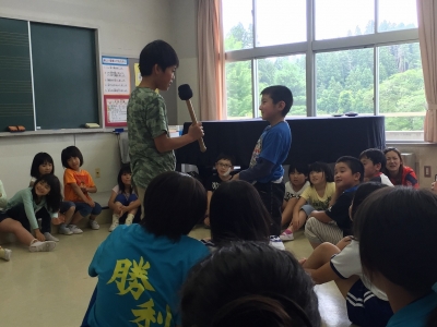 「1学期頑張ったことや楽しかったことは?」という問いに、各学年2~3名が答えていました。誰がインタビューされるのか分からないので、参加者も少しヒヤヒヤしていました。